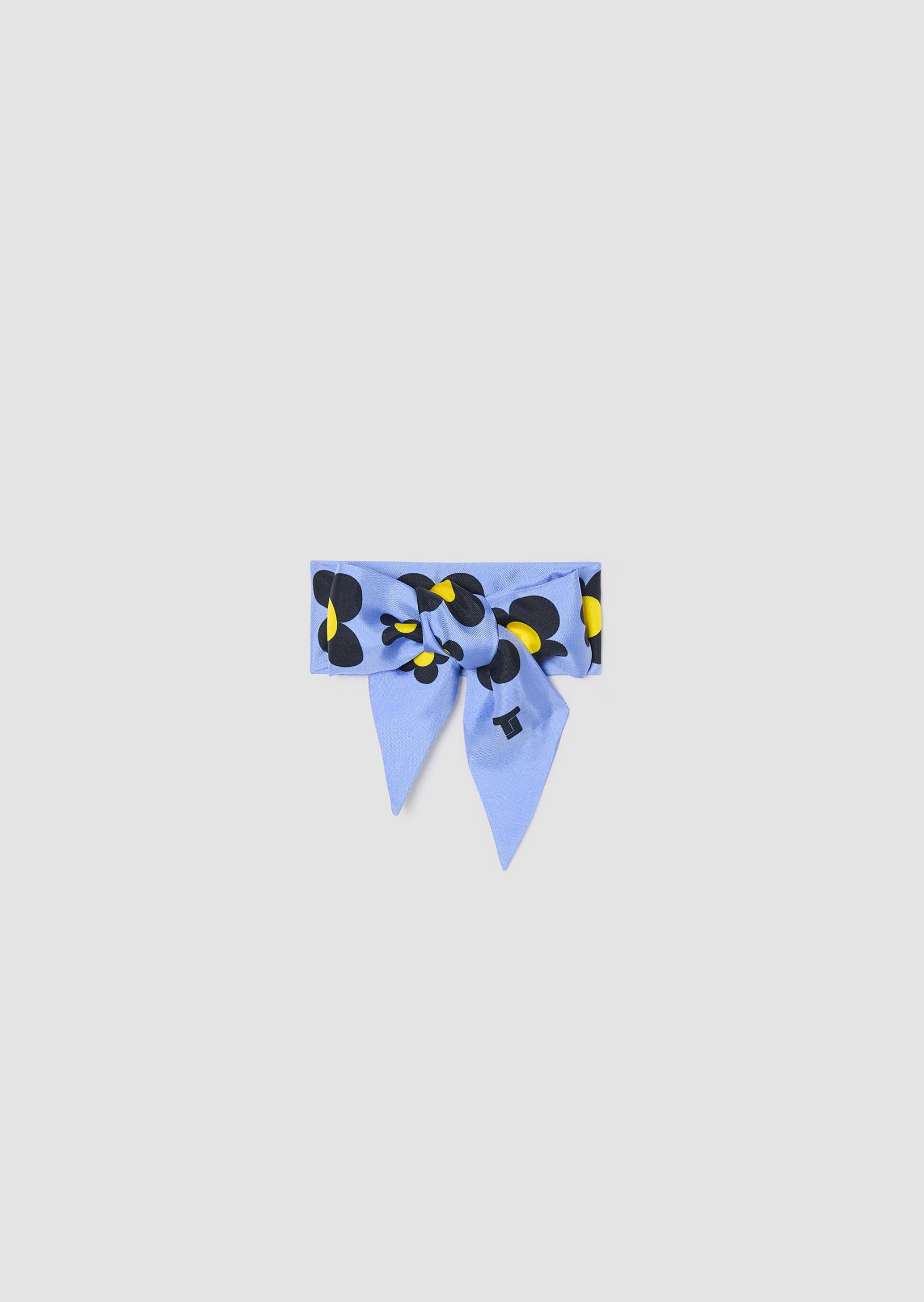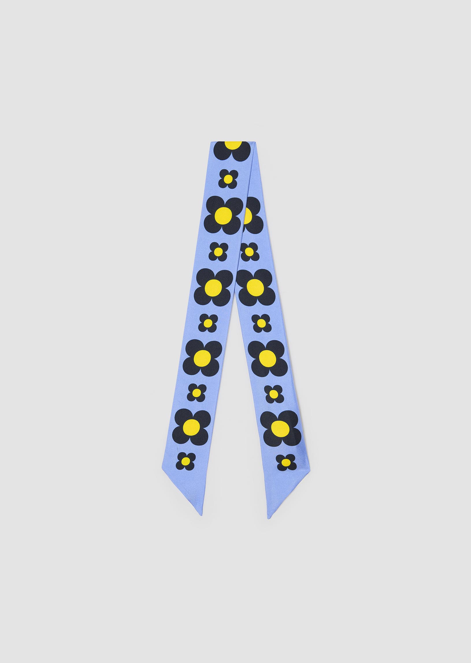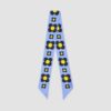 Elise, our horizon accessory. The Elise scarf is adorned with a luminous horizon blue, enhanced by its tone-on-tone geometric print. Made from a satiny material with a fluid drape, it enhances the silhouette with a colorful and elegant touch. Tie it around the neck, a bag, or in the hair for a refined look in all circumstances.