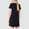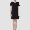 This short midnight-blue dress in flowing crepe features a straight cut, round neck and puffed balloon sleeves. The chic little detail is the openwork shoulder detail adorned with jeweled buttons.