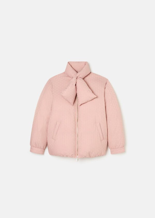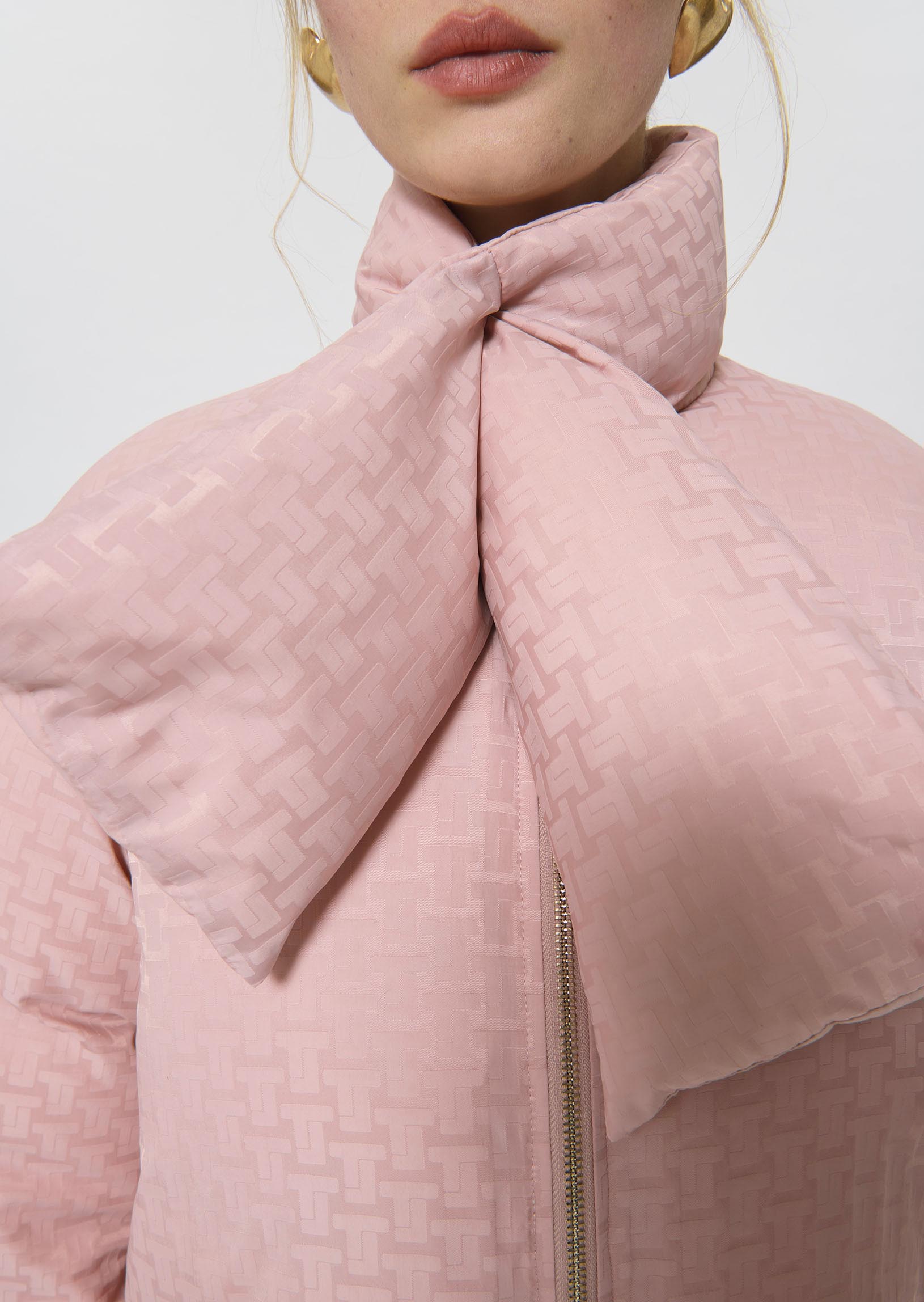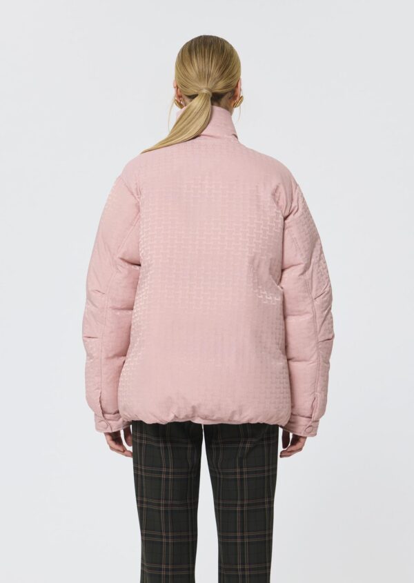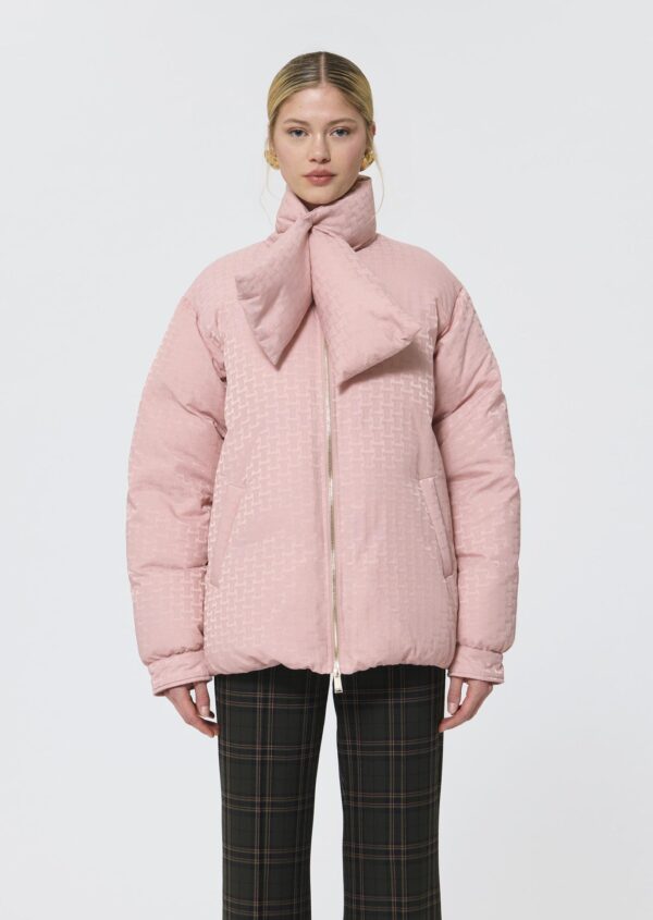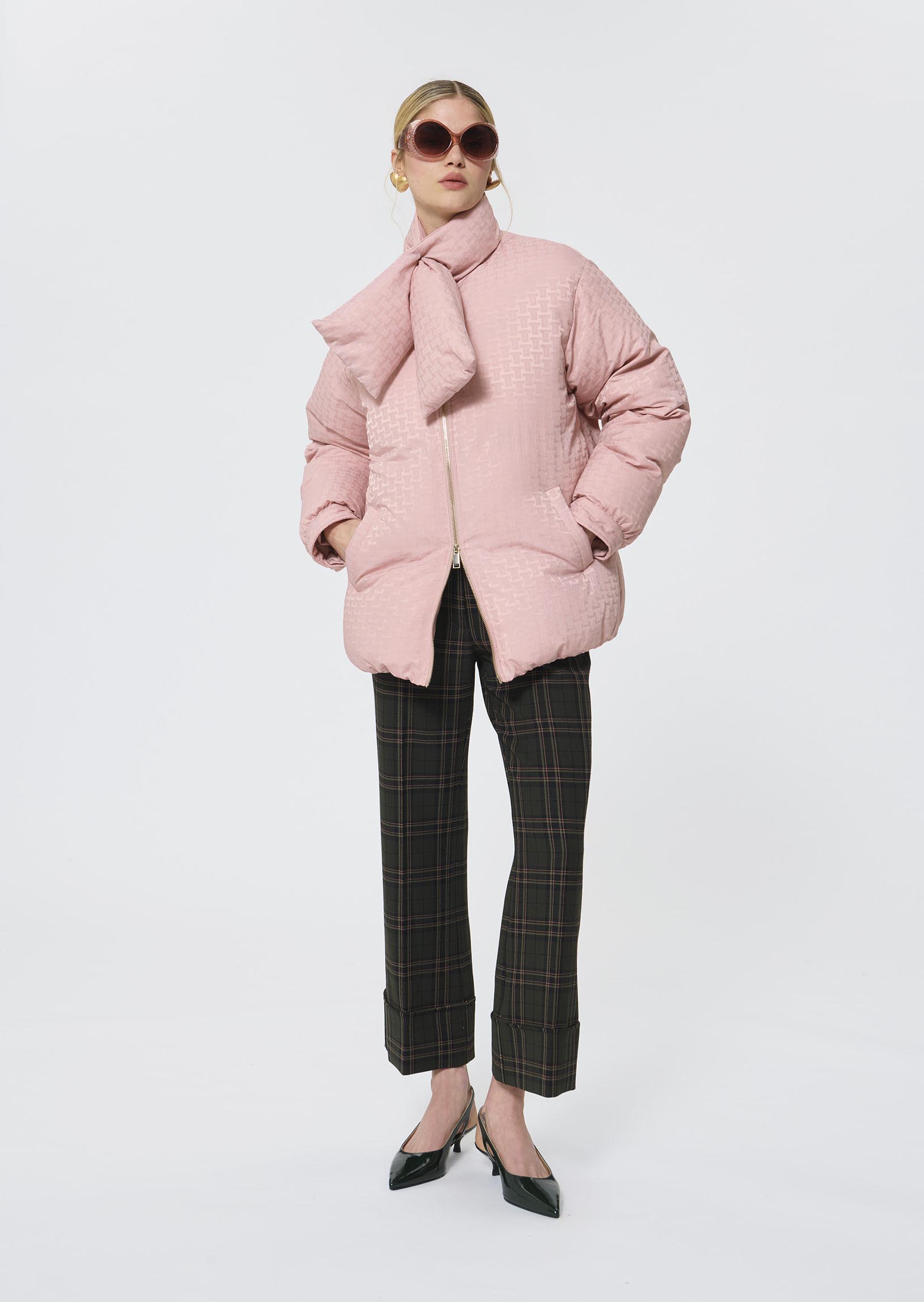 Denise, our blush down jacket. Colorful softness against the cold. This Denise blush down jacket is part of the Meet Mary wardrobe. It instantly elevates your silhouette thanks to the delicate combination with the Pia pants and the Ross dress.